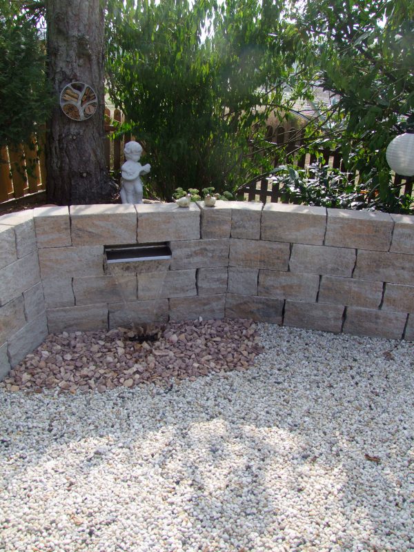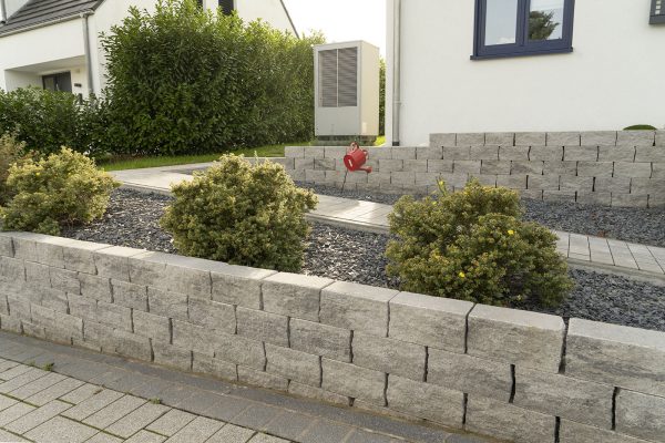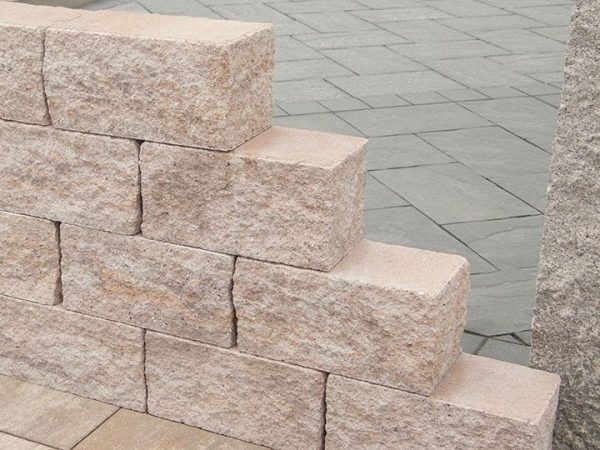 Ein Mauersteinsystem im handlichen Format. Das Arkstone Mauersteinsystem besitzt durch seine 4-seitige Spaltung eine sehr natürliche Anmutung. Der Normalstein dient auch als Eck-, End- und Pfeilerstein.