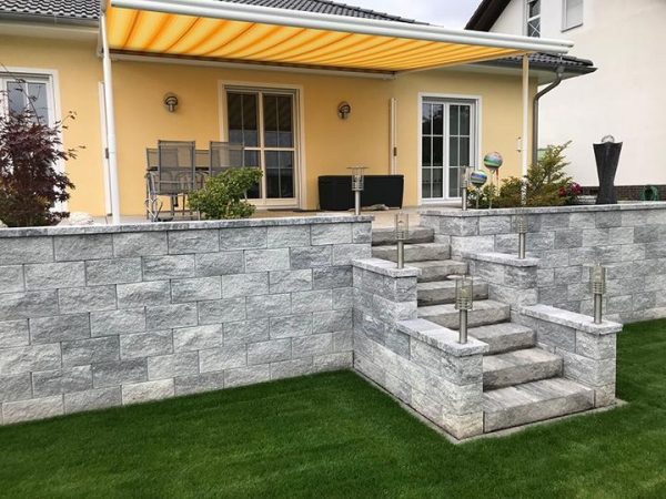 Ein vielseitig einsetzbares Mauersystem. Die aufeinander gestellten Cape Coral Steine werden vor dem Abschluss mit den Abdeckplatten einfach mit Beton verfüllt. Der relativ leichte Stein lässt sich so einfach und schnell verbauen und erhält nach dem Auffüllen einen „sicheren“ Stand. Ob Oasen der Ruhe oder Plätze für gesellige Stunden, der Reiz natürlicher Farbtöne fasziniert jeden.