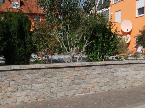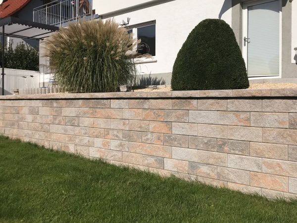 Zudem ermöglicht dieses System die Mauer pro Lage jeweils 6mm oder auch 12mm nach hinten zu versetzen um so eine deutlich höhere Belastbarkeit zu erzielen. Die seitlich an den Steinen angefügten Protektoren gewährleisten einen perfekten Durchblickschutz.